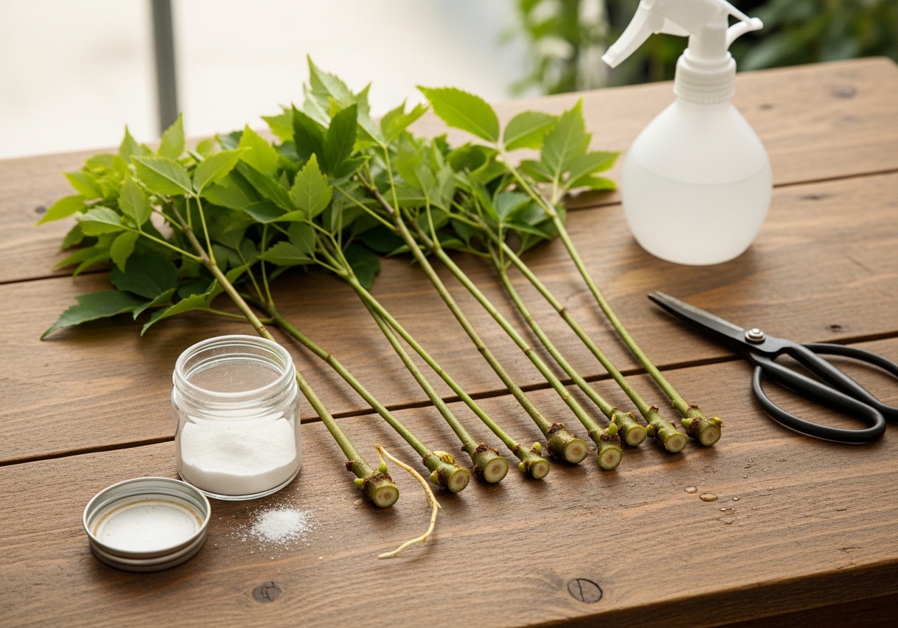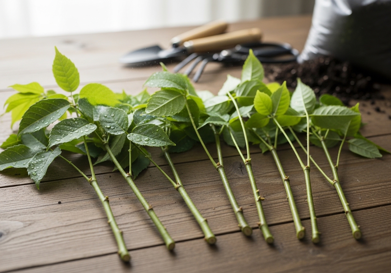 - ✅ 건강한 삽수: 1~2년생, 연필 굵기, 2~3개 눈 포함. 도구 소독 필수!