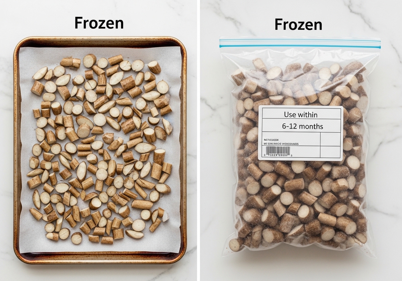 - 소분하여 밀봉: 물기 제거한 우엉을 1회분씩 소분하여 지퍼백이나 밀폐용기에 담고, 공기를 최대한 빼 밀봉합니다.
