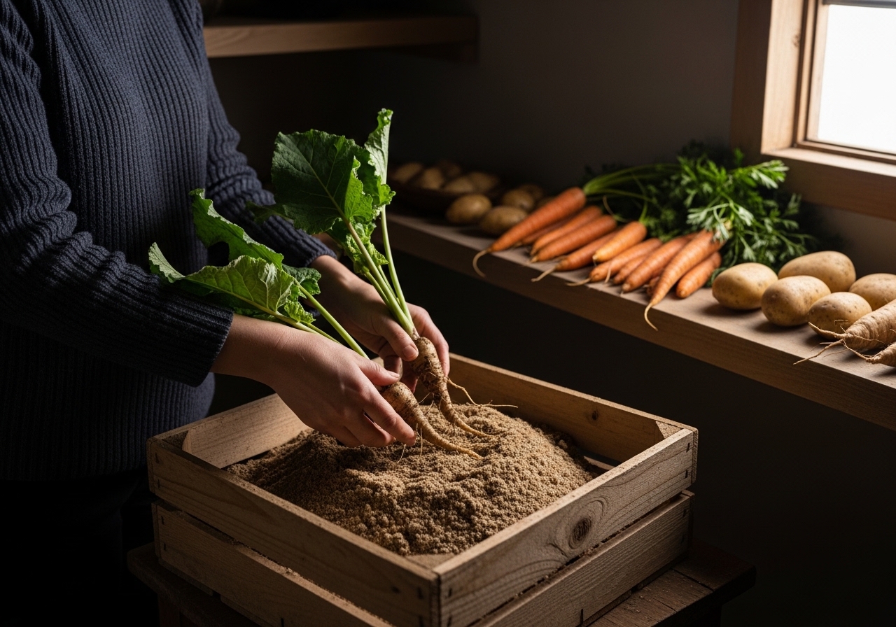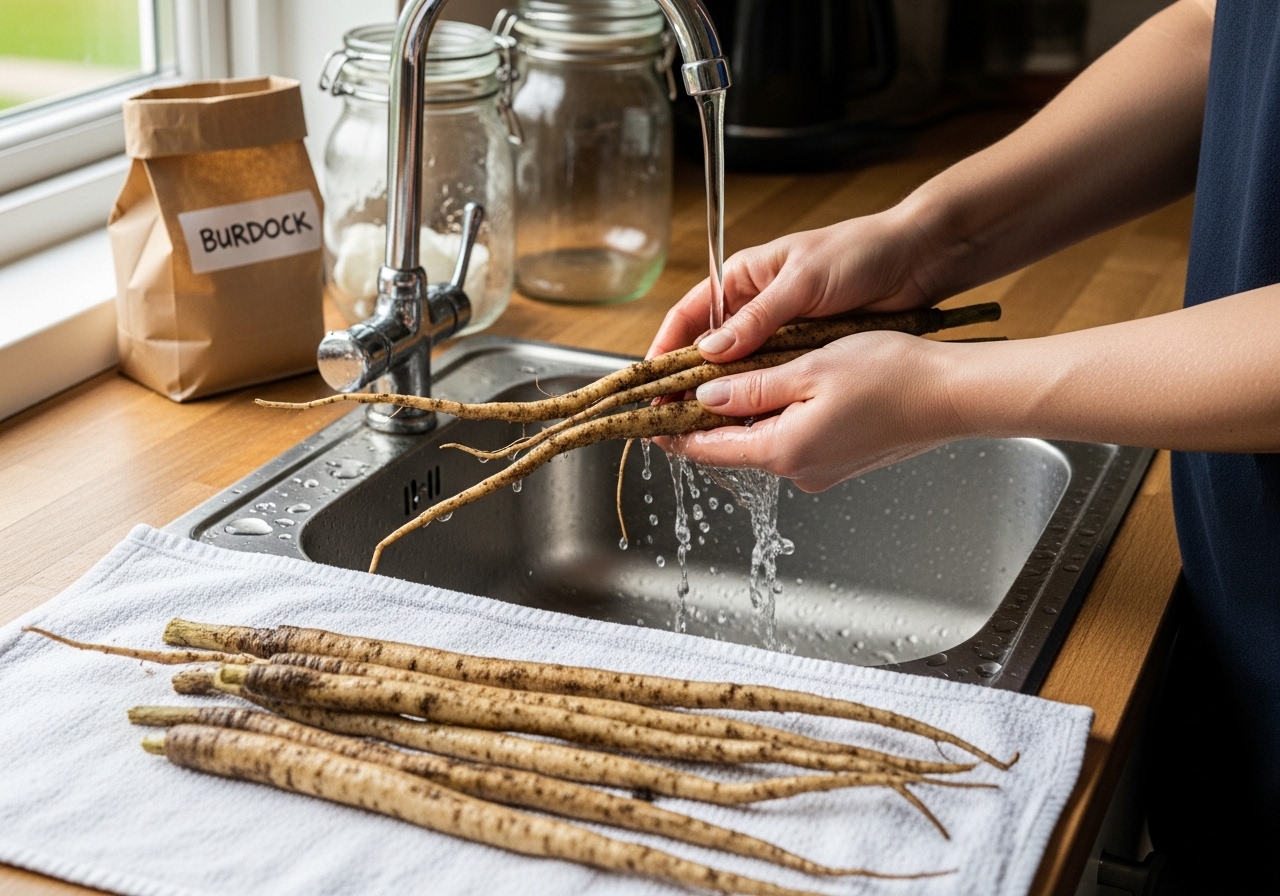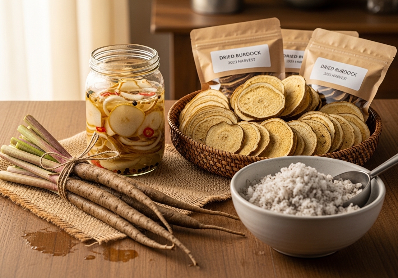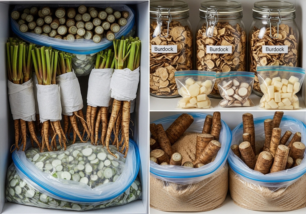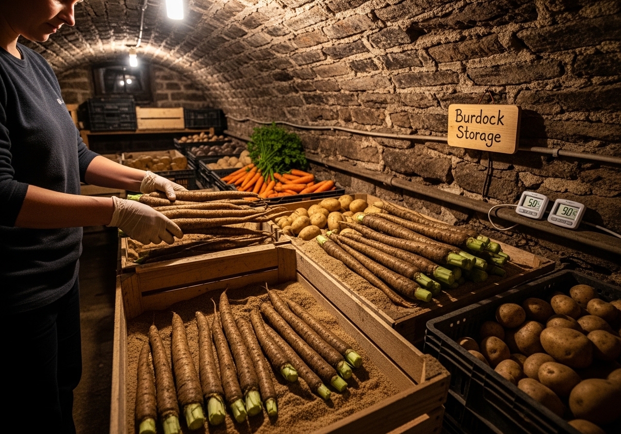 - 흙 채로 보관 (최장기): 우엉은 흙 속에서 자라므로, 흙 묻은 채 보관이 최적입니다. 촉촉한 흙이나 모래에 우엉을 묻어 서늘하고 통풍 잘 되는 곳에 두면 몇 주에서 한 달 이상 신선해요.