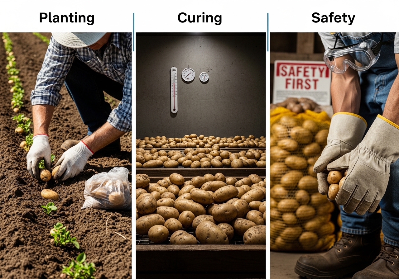- 1. 씨감자 큐어링은 필수: 잘린 씨감자는 3~5일간 그늘에서 아물려 병균 침투를 막으세요.