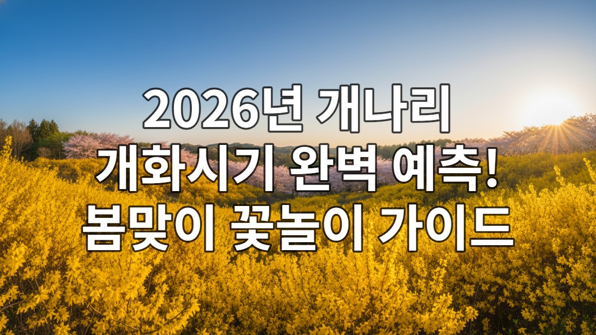 2026년 봄, 노란 개나리가 전국을 물들일 개화 시기가 궁금하신가요? 이 포스팅에서 올해 개화 예측, 개화 요소, 명소, 즐기는 팁까지 확인하고 봄맞이 꽃놀이 계획을 세워보세요!