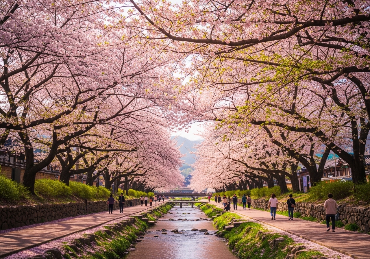 매년 봄이 오면 귀여천 변은 분홍빛으로 물들고, 잔잔한 강물에 비친 벚꽃 그림자는 마치 한 폭의 수채화 같아요. 저는 특히 맑은 날 오후에 방문하는 것을 추천하는데요, 햇살에 반짝이는 벚꽃잎들이 정말 환상적이거든요! 벚꽃이 흩날리는 순간을 포착하는 것도 잊지 마세요. 인생샷을 건지기 딱 좋은 스팟들이 곳곳에 숨어있답니다.