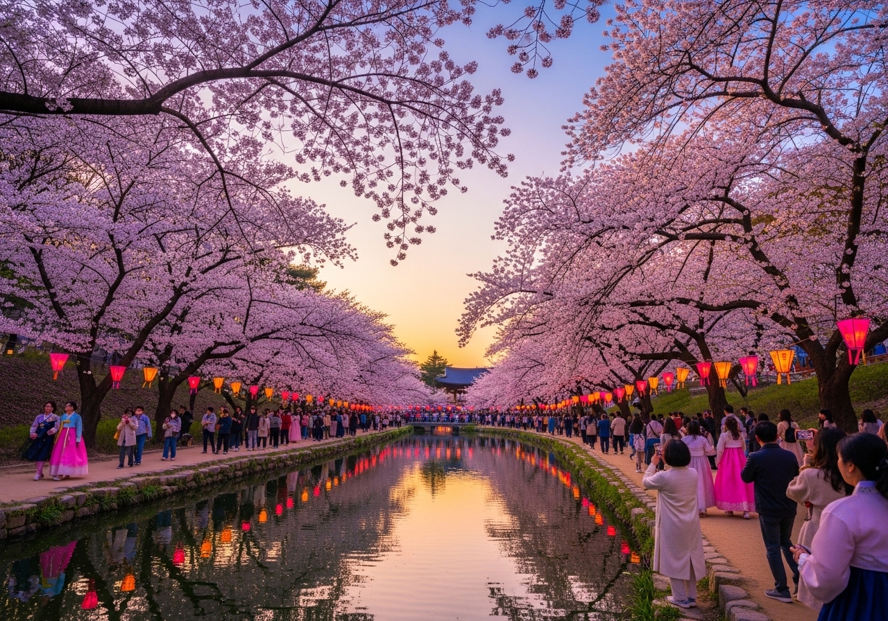 - 벚꽃 샤워: 특별한 조명 효과로 벚꽃이 쏟아지는 듯한 경험!