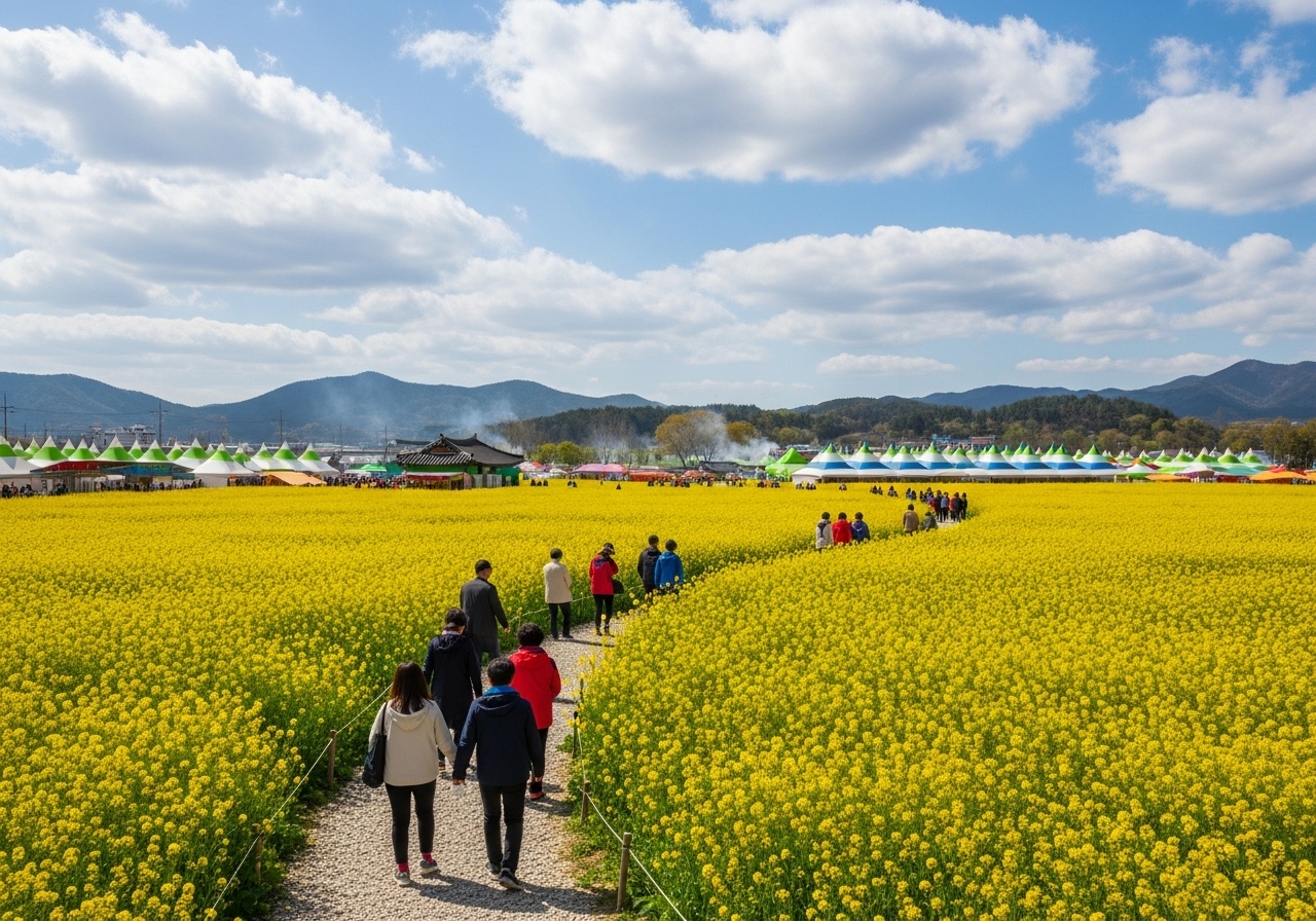 A4: 비가 올 경우 우산이나 우비를 준비하시고, 미끄러지지 않도록 편안한 신발을 착용하는 것이 좋습니다. 유채꽃밭 흙길은 젖으면 진흙탕이 될 수 있으니 주의하세요. 일부 야외 공연은 취소될 수도 있으니 방문 전 공식 사이트 확인을 권장합니다.