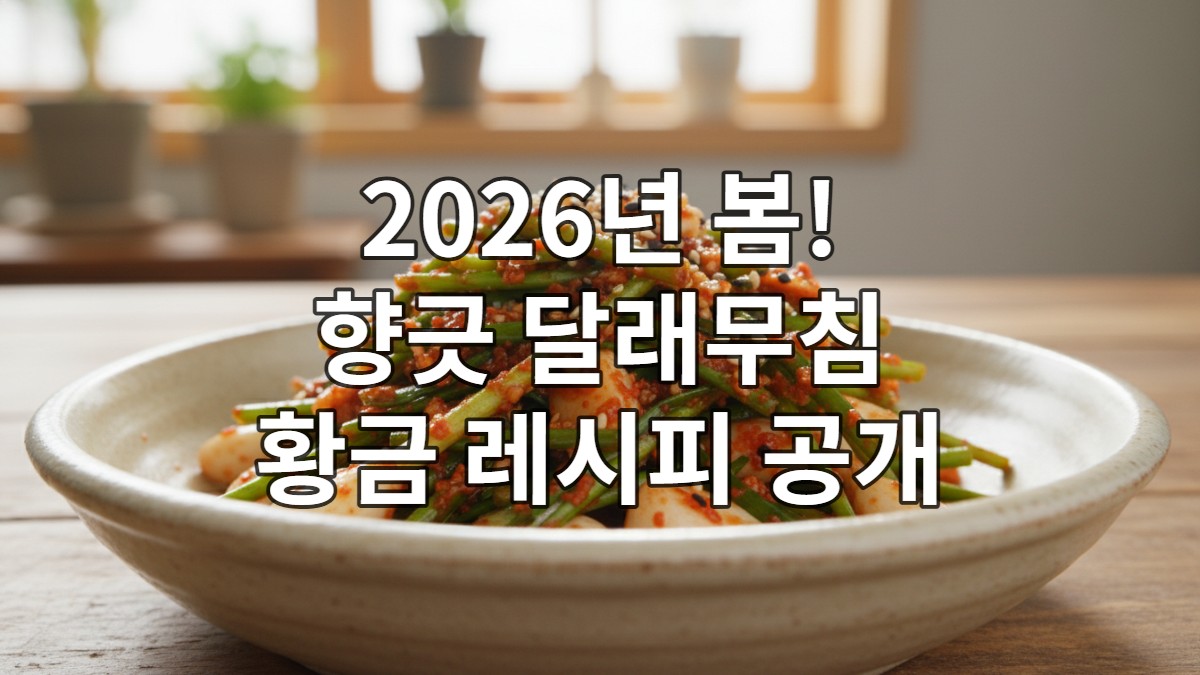 싱그러운 봄 향기가 가득한 2026년 3월, 제철을 맞은 달래로 입맛을 돋우는 달래무침 레시피를 소개합니다. 특유의 알싸한 맛과 향으로 겨우내 잃었던 활력을 되찾아주는 달래는 피로회복과 면역력 증진에도 탁월한데요. 오늘 이 글에서는 누구나 쉽고 맛있게 만들 수 있는 달래무침의 황금 레시피와 함께, 달래 손질부터 보관법까지 모든 노하우를 아낌없이 공개합니다. 신선한 달래로 건강하고 맛있는 식탁을 꾸며보세요!