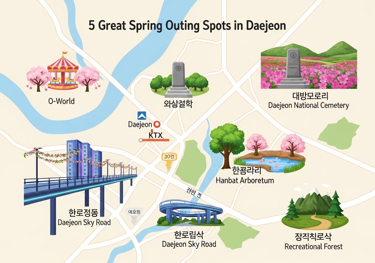 2026년, 대전의 봄을 가장 아름답게 만끽할 수 있는 명소 5곳을 소개합니다. 🌸 따뜻한 햇살 아래 다채로운 꽃들이 만개하고, 푸릇푸릇한 자연이 손짓하는 대전의 숨겨진 보석 같은 장소들을 저와 함께 미리 만나보고, 올봄 특별한 추억을 만들어보세요!