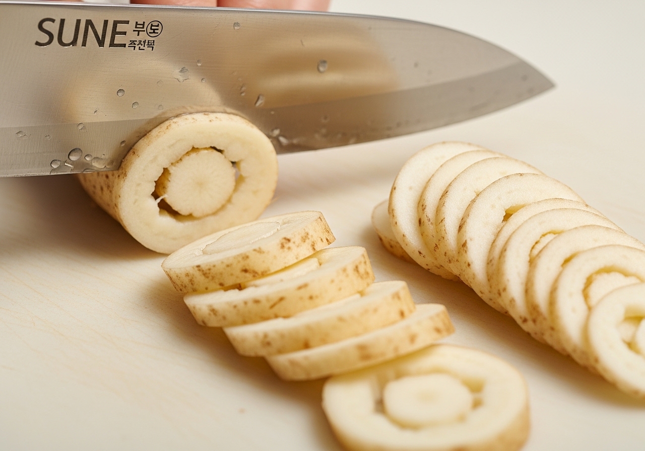 💡 더덕 껍질 쉽게 까는 팁: 더덕에 끓는 물을 살짝 부었다가 바로 찬물에 식히면 껍질이 더 잘 벗겨져요. 또는 비닐봉지에 더덕을 넣고 소금을 약간 뿌린 후 문질러도 껍질이 쉽게 벗겨집니다.