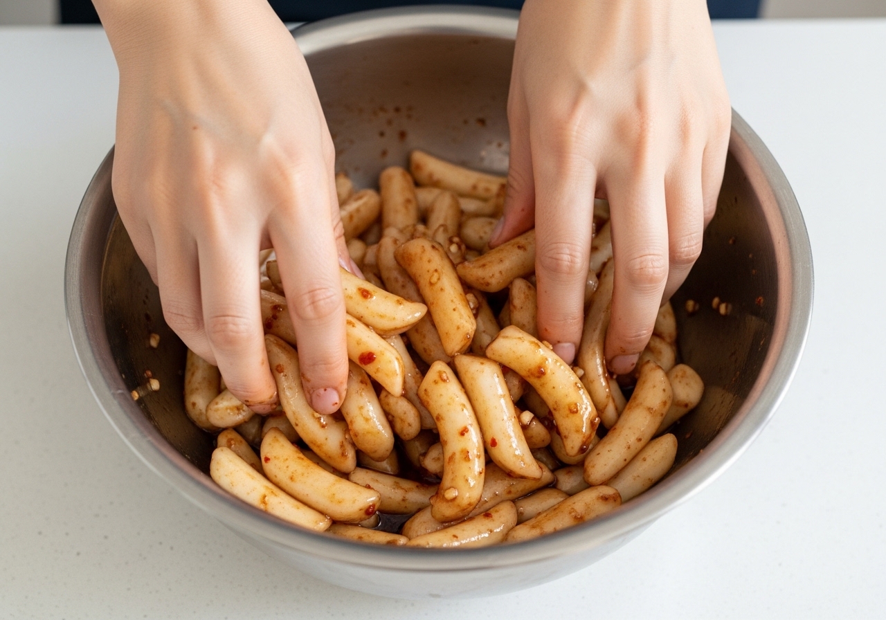 ⚠️ 주의! 곰팡이 방지 팁: 더덕이 양념장 위로 뜨면 공기와 접촉하여 곰팡이가 생길 수 있어요. 항상 양념장에 더덕이 완전히 잠겨 있도록 해주세요. 만약 양념장이 부족하다면, 같은 비율로 소량 더 만들어 추가해주세요.