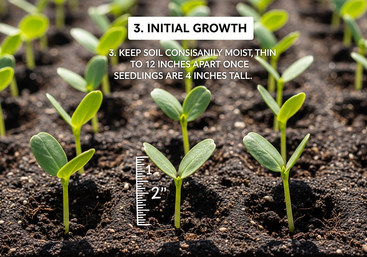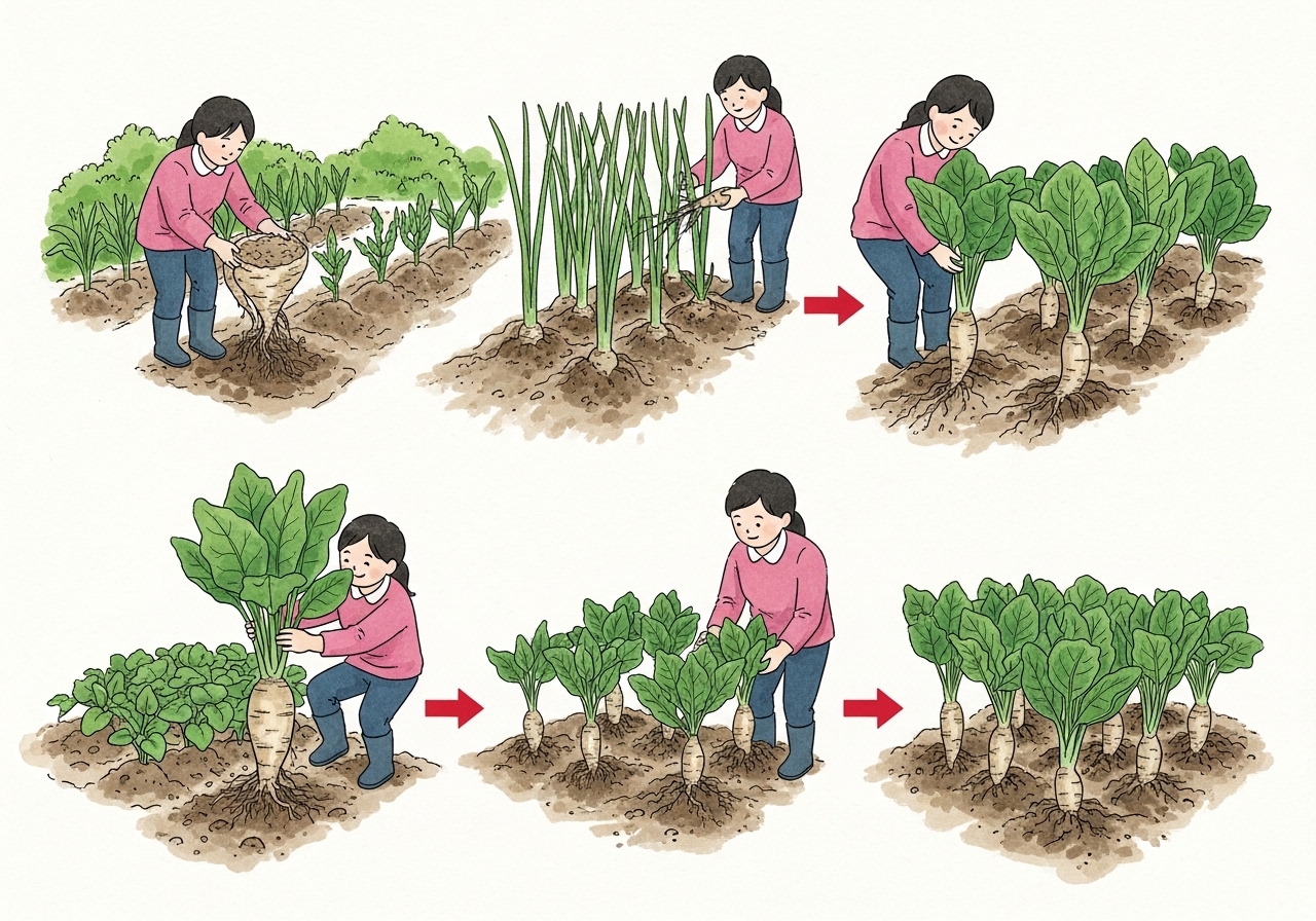 - 씨앗 파종 시: 씨앗을 물에 불린 후(약 24시간) 파종하면 발아율을 높일 수 있습니다. 밭에 20~30cm 간격으로 줄뿌림하거나 점뿌림하고, 흙을 1cm 정도 덮어준 후 가볍게 눌러주세요.