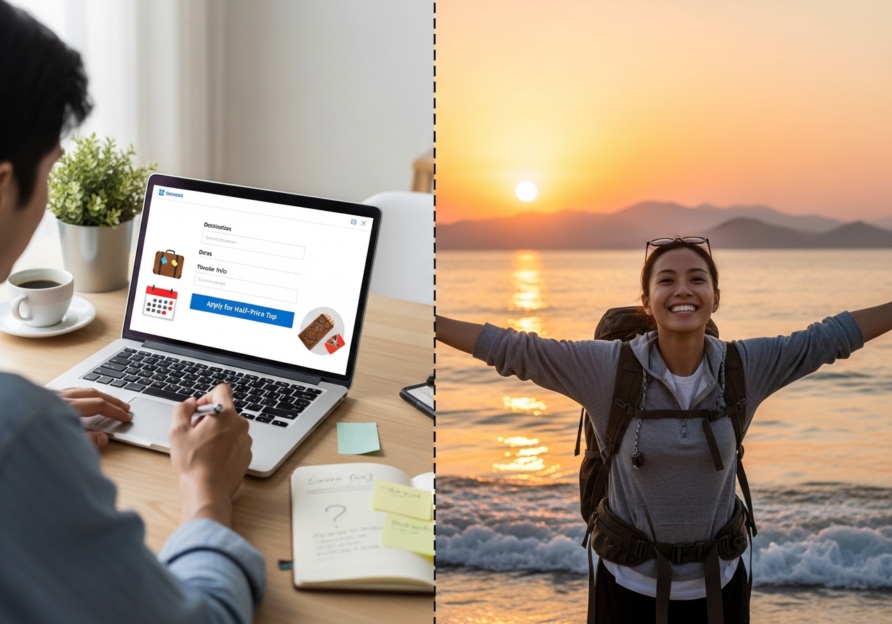 반값 여행은 여행 전에 반드시 사전 신청을 해야만 혜택을 받을 수 있습니다. 총 3단계로 구성되어 있으니, 제가 차근차근 설명해 드릴게요. 절대 놓치지 마세요!