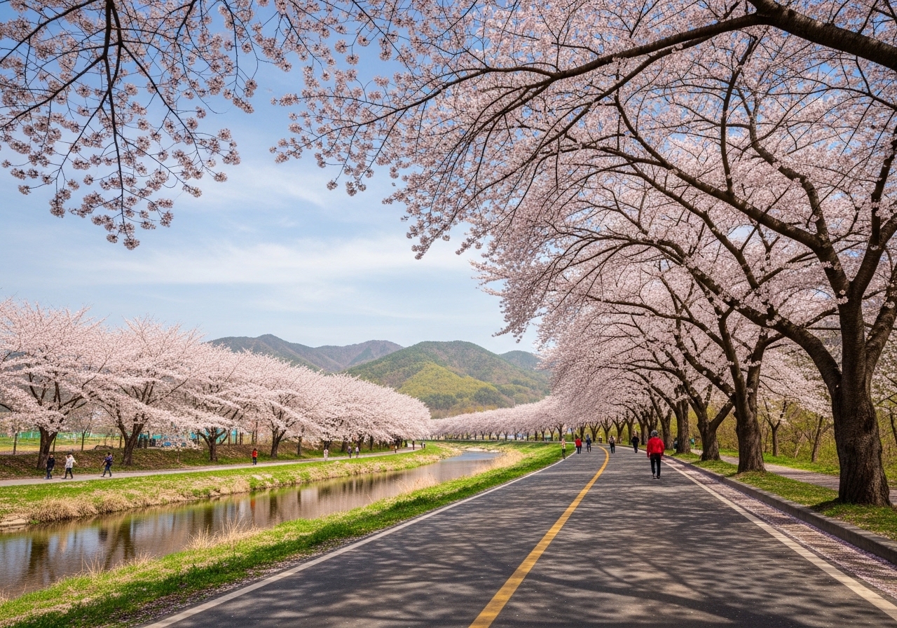 차를 두고 천천히 걷거나 자전거를 대여하여 벚꽃길을 따라 이동하는 것도 좋은 방법이에요. 보청천을 따라 잘 정비된 산책로와 자전거길이 마련되어 있어 안전하고 쾌적하게 벚꽃을 즐길 수 있습니다. 특히 벚꽃길 중간에 있는 작은 다리들은 사진 스팟으로도 유명하니 놓치지 마세요! 강변을 따라 걷다 보면 철새들이 노니는 모습도 종종 볼 수 있어 자연의 아름다움을 더욱 깊이 느낄 수 있습니다.
