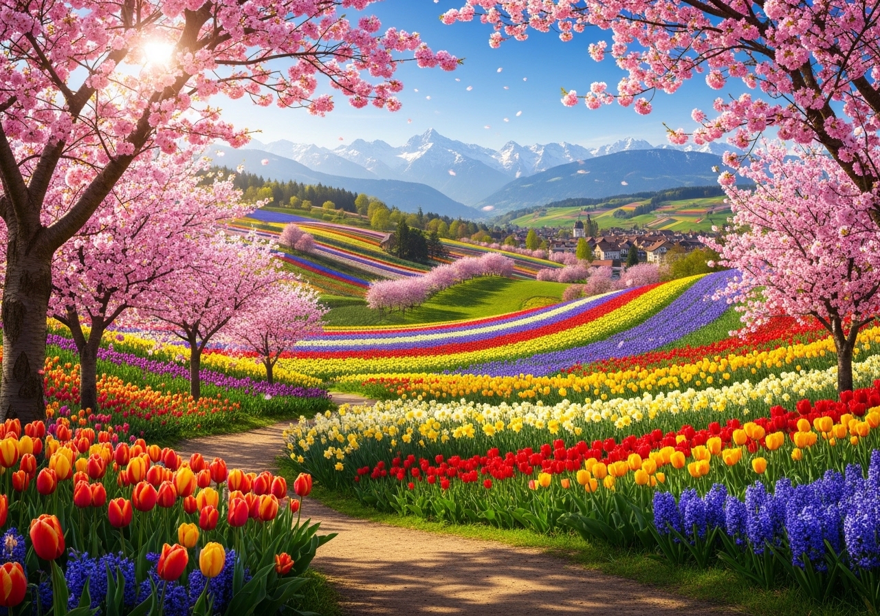 서울 성동구에 위치한 서울숲은 봄이면 튤립과 왕벚꽃이 어우러져 한 폭의 그림 같은 풍경을 선사합니다. 특히 튤립 정원은 다채로운 색상의 튤립들이 만개하여 보는 이들의 탄성을 자아내죠.