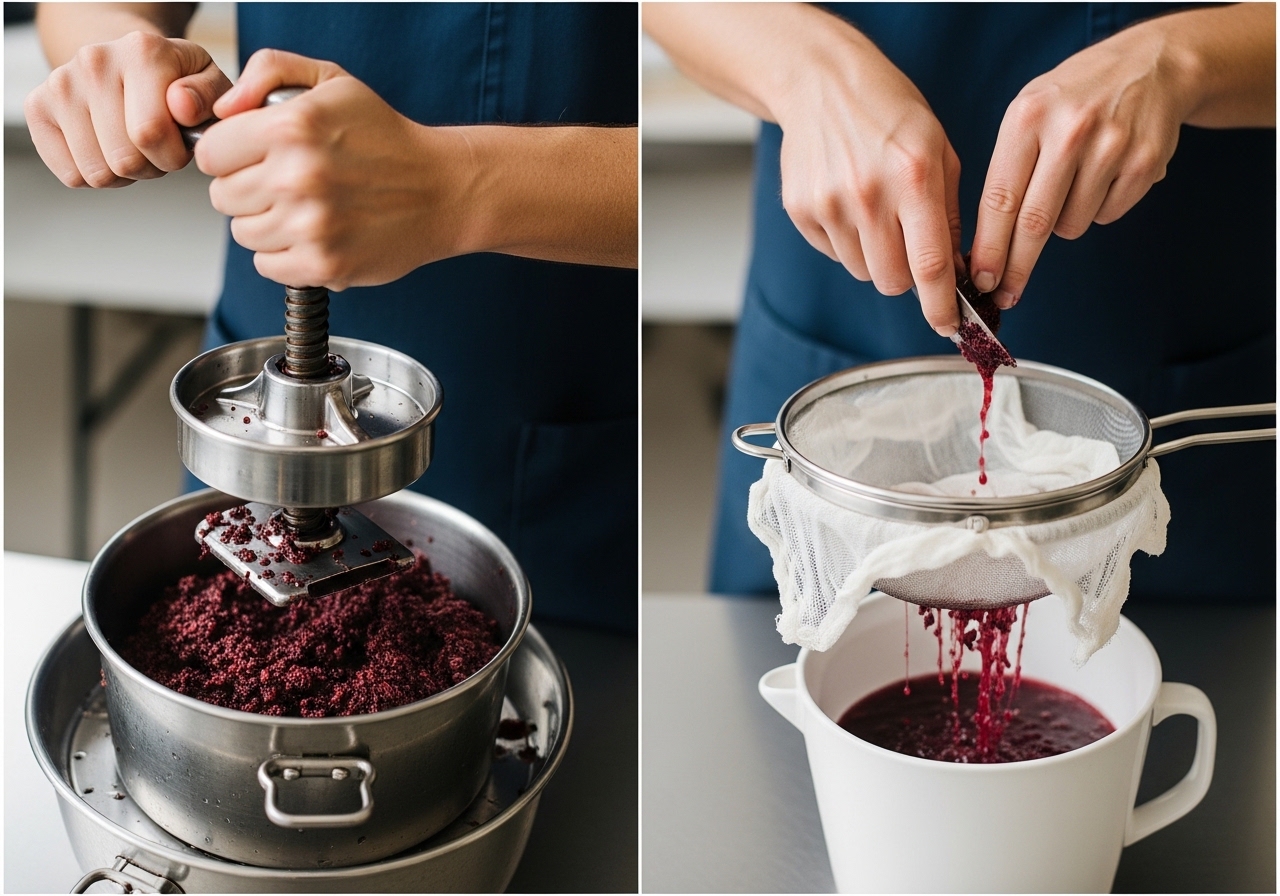 • 거르기: 깨끗한 천이나 고운 망을 이용해 산수유 열매를 걸러내고, 술만 따로 분리해줍니다. 이때 열매를 너무 꽉 짜면 떫은맛이 강해질 수 있으니 주의하세요.