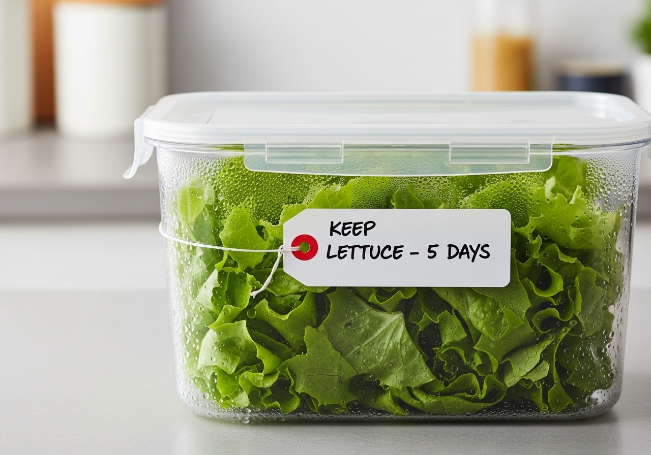 • 감싼 상추 묶음을 다시 밀폐 용기나 지퍼백에 넣어 공기를 최대한 빼고 밀봉합니다.