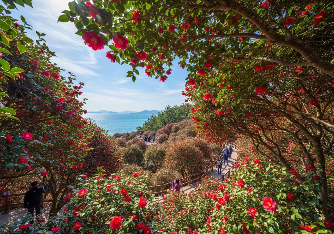 A1: 일반적으로 2월 중순부터 3월 중순까지가 가장 아름다운 절정기입니다. 이때 섬 전체가 붉은 동백꽃으로 가득 차 환상적인 풍경을 이룹니다.