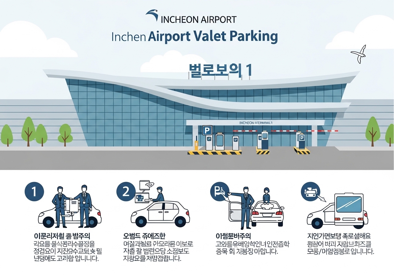 - 공식 서비스만 이용: 보험 보장과 안전을 위해 인천공항 공식 발렛 업체만 선택하세요.