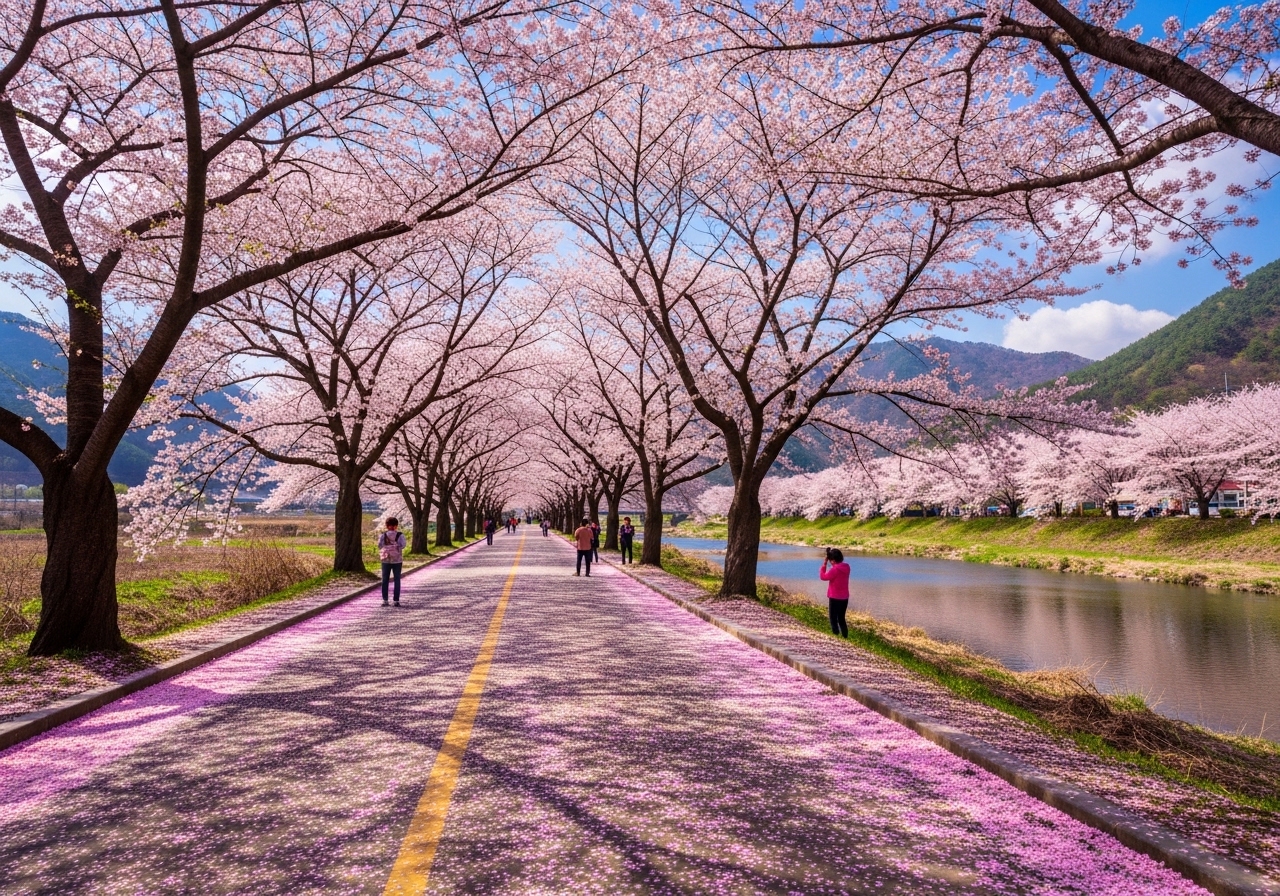 • 100리 벚꽃길의 장관: 구례 섬진강은 강과 산, 벚꽃이 어우러진 독보적인 아름다움으로 유명해요.