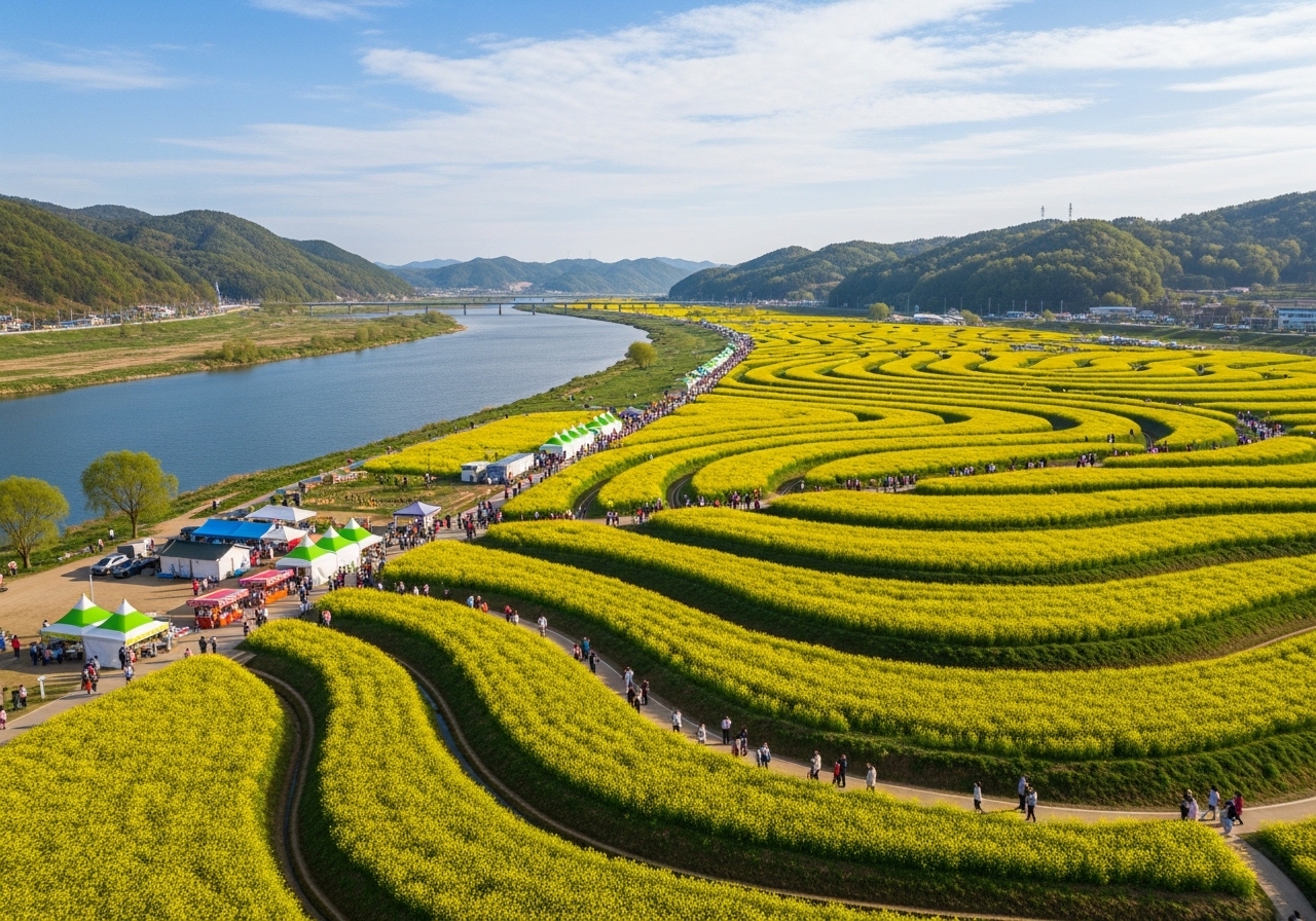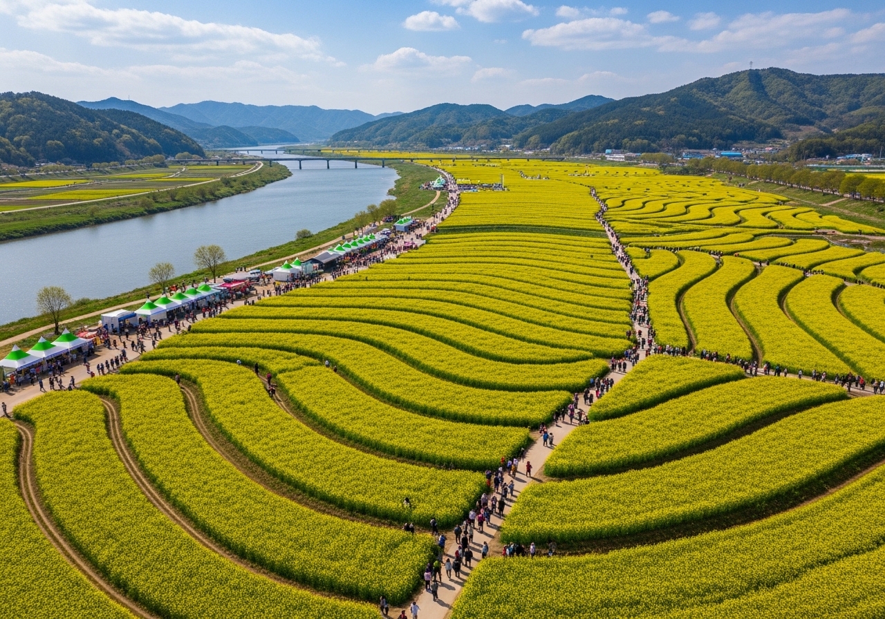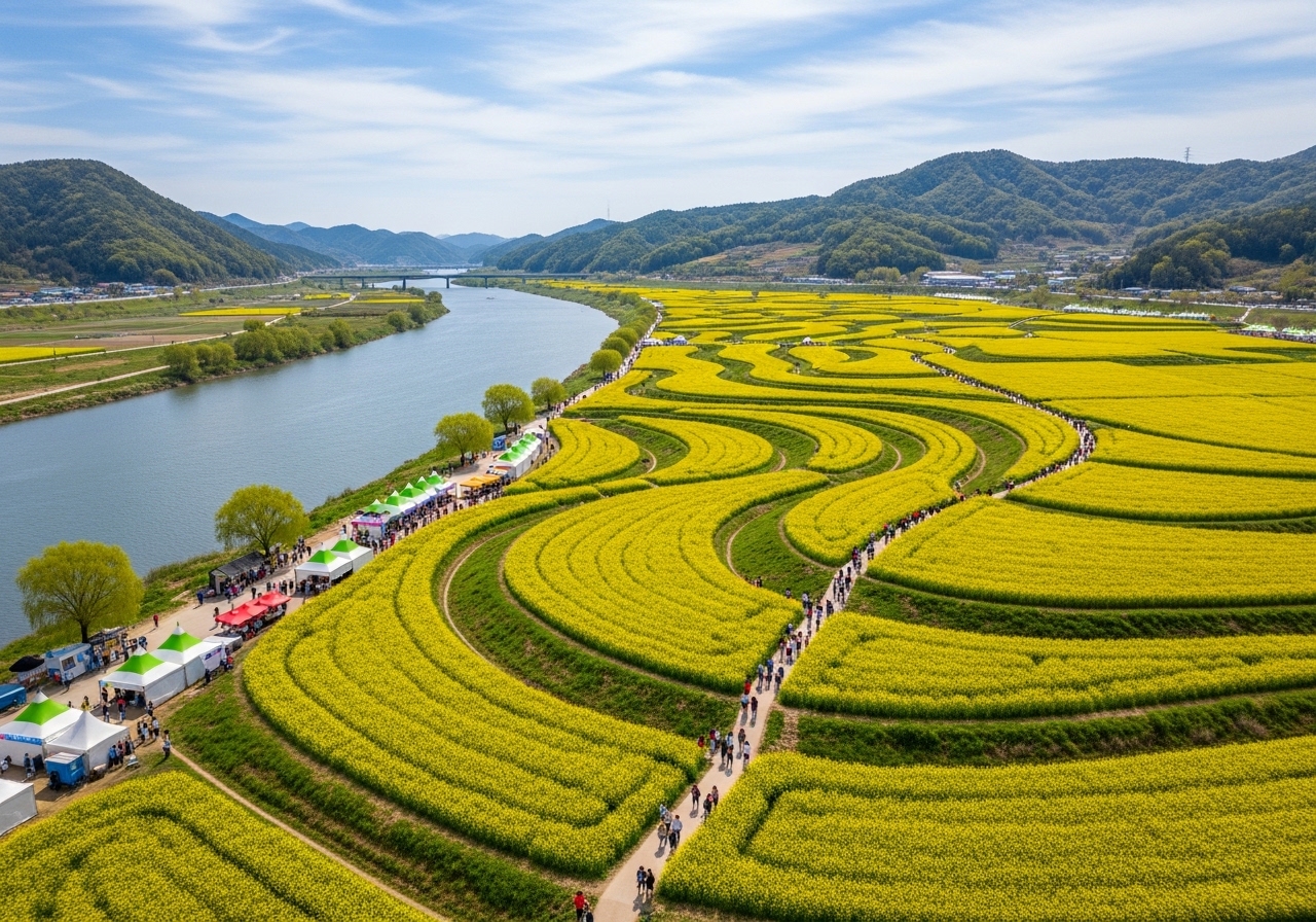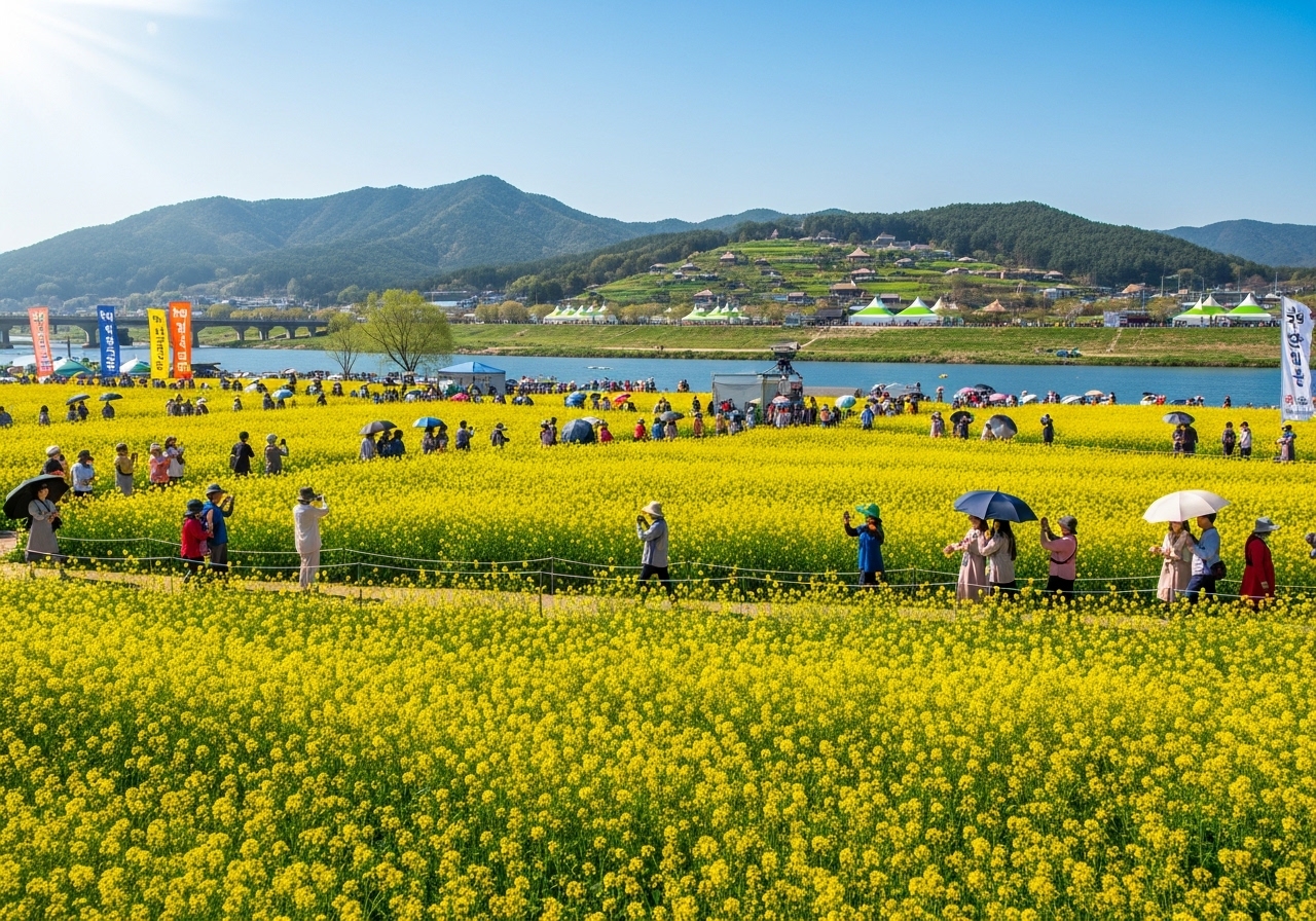 ⚠️ 주말 방문 시 주의! 특히 4월 10일 개막식과 주말(4월 11일, 12일)에는 많은 인파가 예상됩니다. 조금 더 여유롭게 축제를 즐기고 싶으시다면, 평일 오전, 특히 목요일 오전 방문을 강력 추천합니다! 넓은 유채꽃밭을 배경으로 한적하게 사진을 찍고 싶다면 오전 일찍 방문해 보세요.