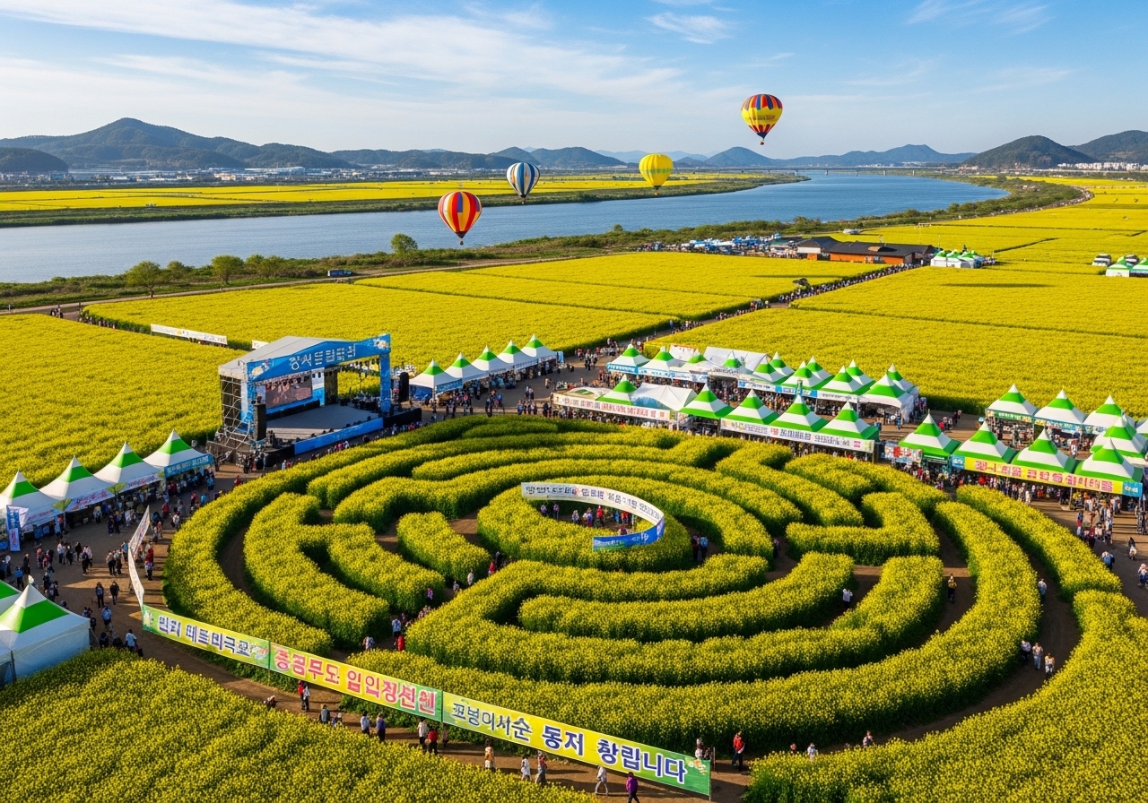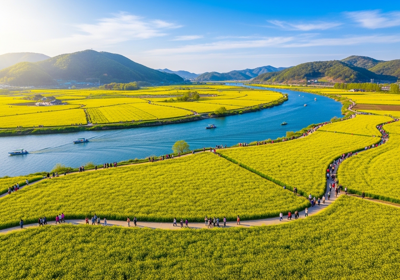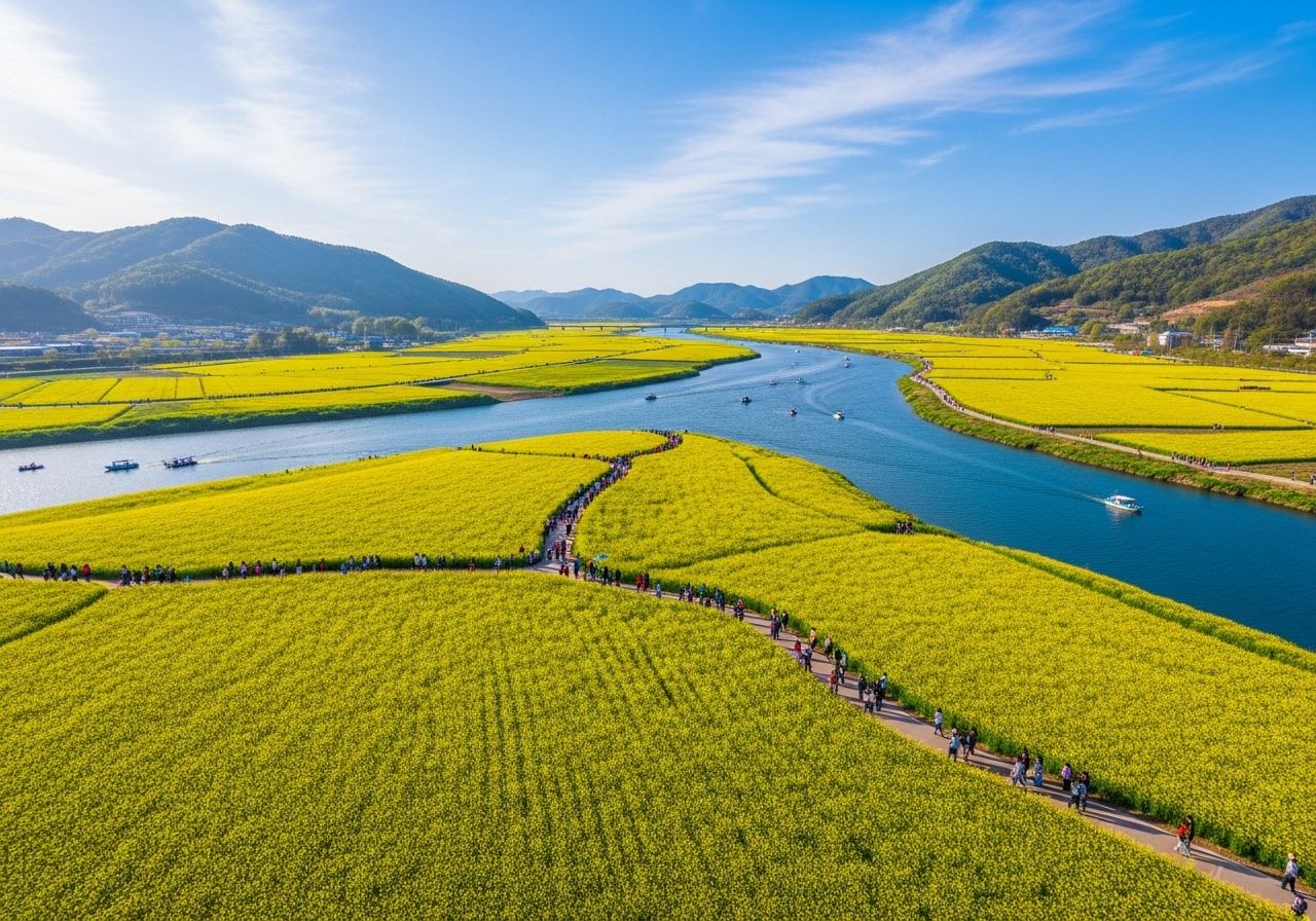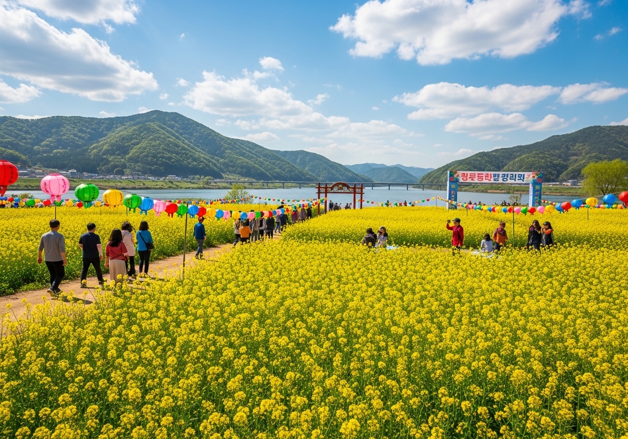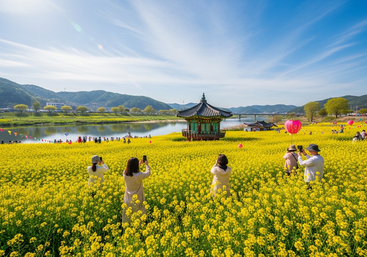 ⚠️ 주말 방문 시 주의! 특히 4월 10일 개막식과 주말(4월 11일, 12일)에는 많은 인파가 예상됩니다. 조금 더 여유롭게 축제를 즐기고 싶으시다면, 평일 오전, 특히 목요일 오전 방문을 강력 추천합니다! 넓은 유채꽃밭을 배경으로 한적하게 사진을 찍고 싶다면 오전 일찍 방문해 보세요.
