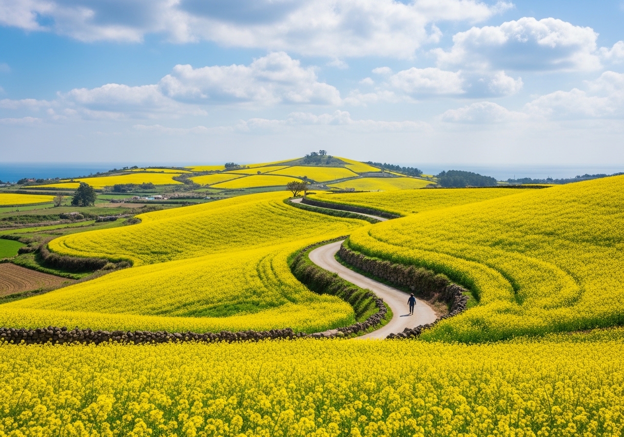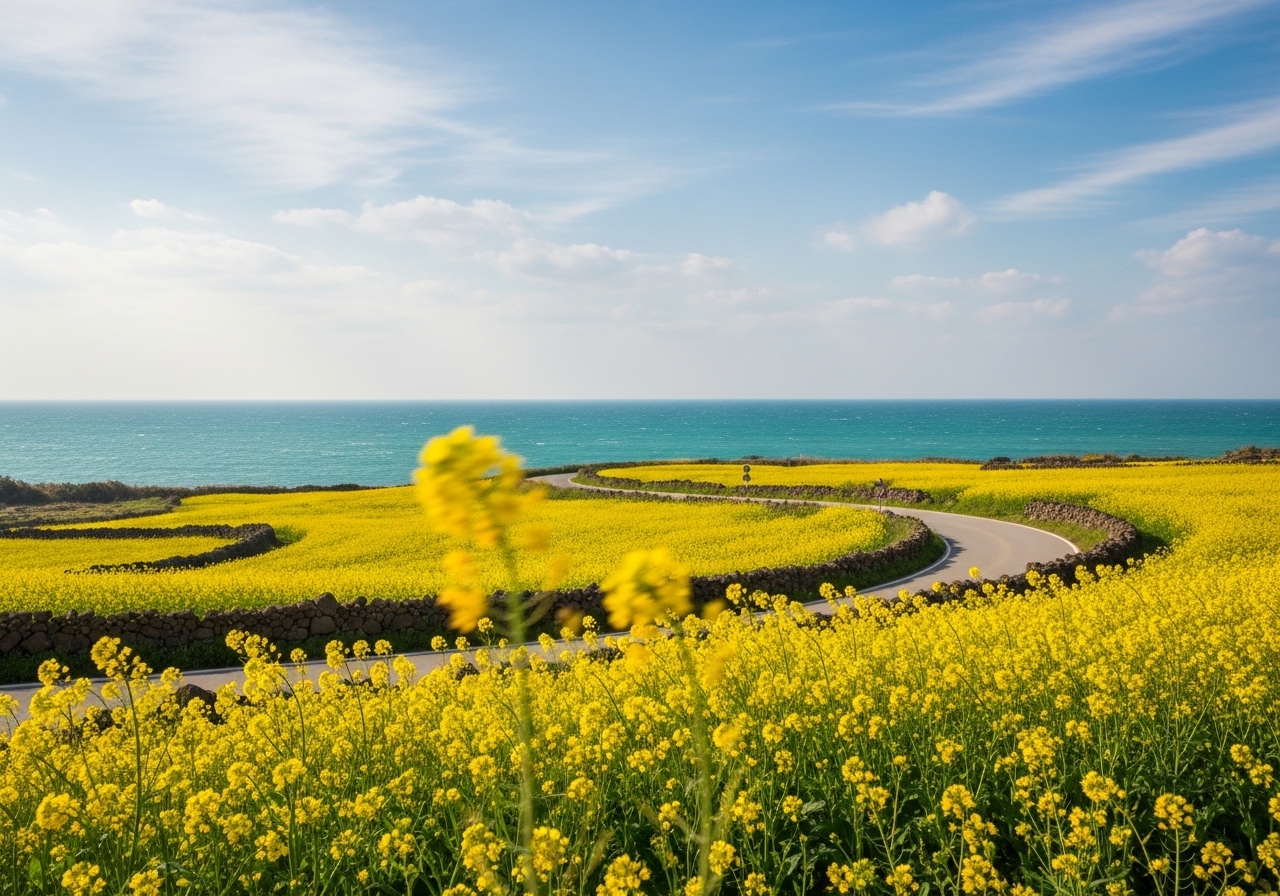 영화 '서편제'의 감동적인 배경이 되었던 돌담길과 노란 유채꽃이 어우러진 풍경은 마치 영화 속 한 장면으로 들어선 듯한 착각을 불러일으켜요. 테라스형으로 조성된 유채밭은 다도해의 시원한 전경과 완벽한 조화를 이루며 인생 사진을 남기기에도 더할 나위 없이 좋습니다.