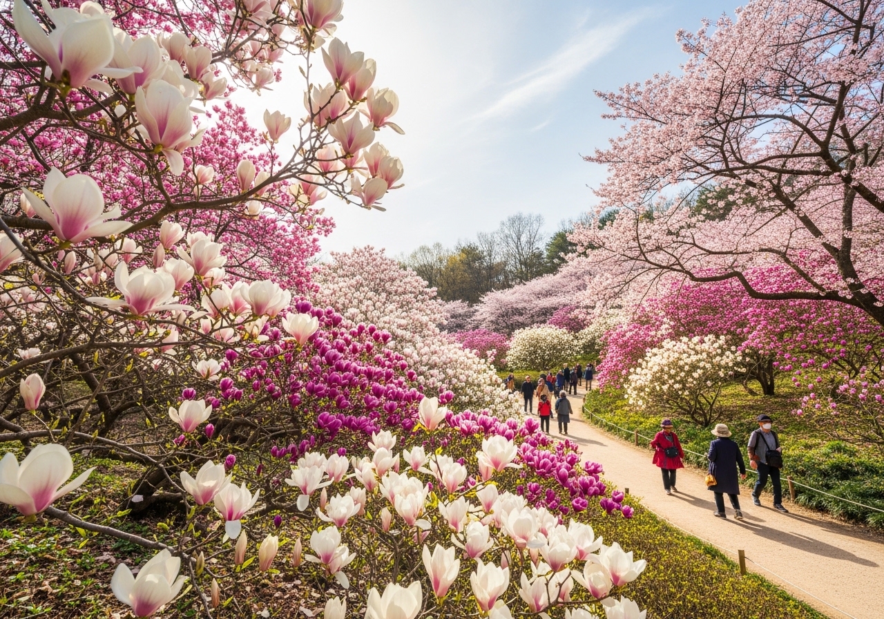 • ✓ 세계 최대 목련 컬렉션: 926분류군 목련 보유, 순차 개화로 다양한 품종 감상 가능.