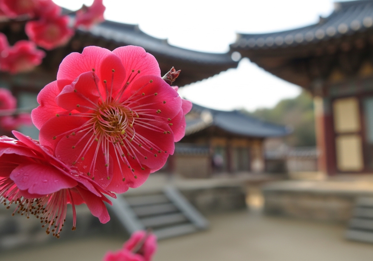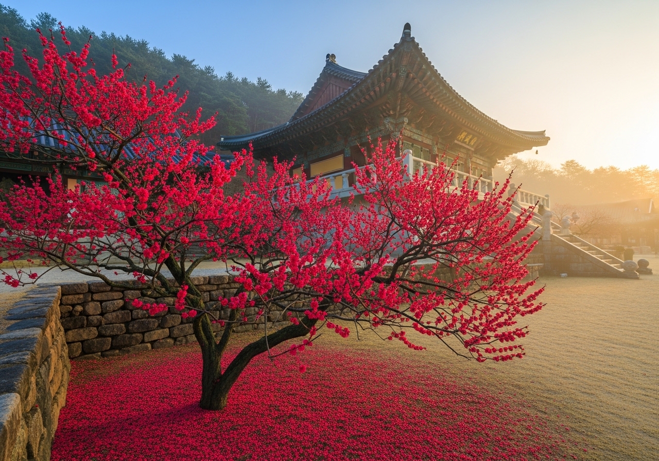 - 통도사 우담바라 홍매화: 1300년 역사의 천년 고찰 통도사의 살아있는 문화재이자 봄의 전령.
