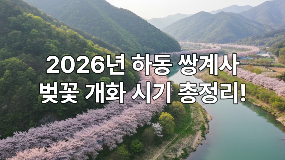벚꽃 개화 시기는 매년 기온 변화에 따라 조금씩 달라지지만, 보통 3월 말에서 4월 초에 절정을 이룹니다. 2026년의 하동 쌍계사 벚꽃 개화는 예년과 비슷한 시기이거나 약간 빠를 것으로 예상됩니다.
