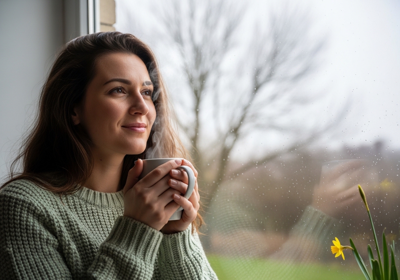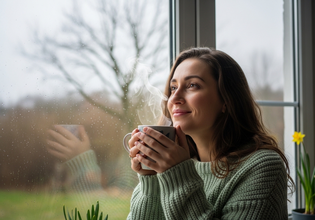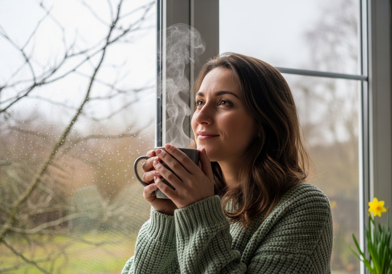 • 커피/차와 여유: 따뜻한 차 한 잔이나 향긋한 커피와 함께 아침의 여유를 즐기는 모습은 바쁜 일상 속 작은 행복을 연상시킵니다.